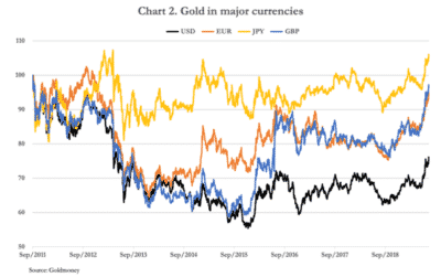 Opnieuw bewijst het gele edelmetaal zijn functie als vluchtheuvel in woelige tijden. En die zijn er ampel op economisch, financieel en sociaal-maatschappelijk gebied. In de nacht van 6 op 7 augustus 2019 haalden gold futures de $1500. Voor dit record moeten we al teruggaan in de tijd tot 2013. All time record in andere munten […]