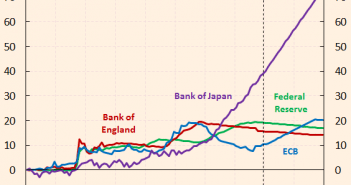 Terwijl FED het afgelopen jaar gestopt is met QE, is de ECB juist begonnen met stimuleringen. En ondertussen draait de BoJ (Bank of Japan) overuren. Alle centrale banken doen hetzelfde. Japan: 73% van GDP Uit onderstaande grafiek van de FT blijkt dat de BoJ in eind 2016 ongeveer een balans heeft van 73% van het […]
